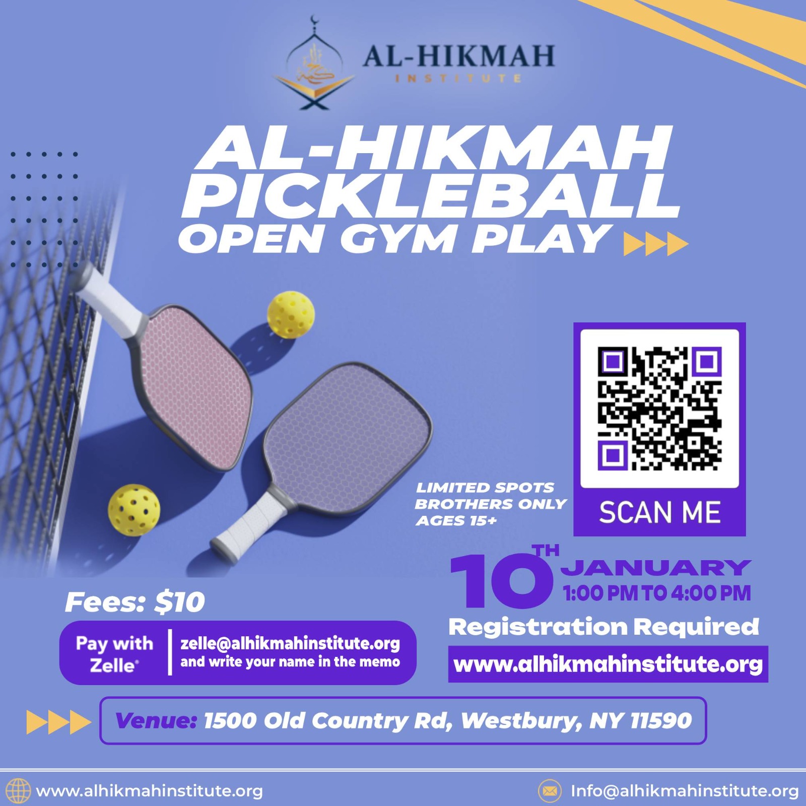 Al-Hikmah Institute presents Pickleball Open Play. Let’s stay active, build brotherhood, and enjoy sports in a healthy environment.