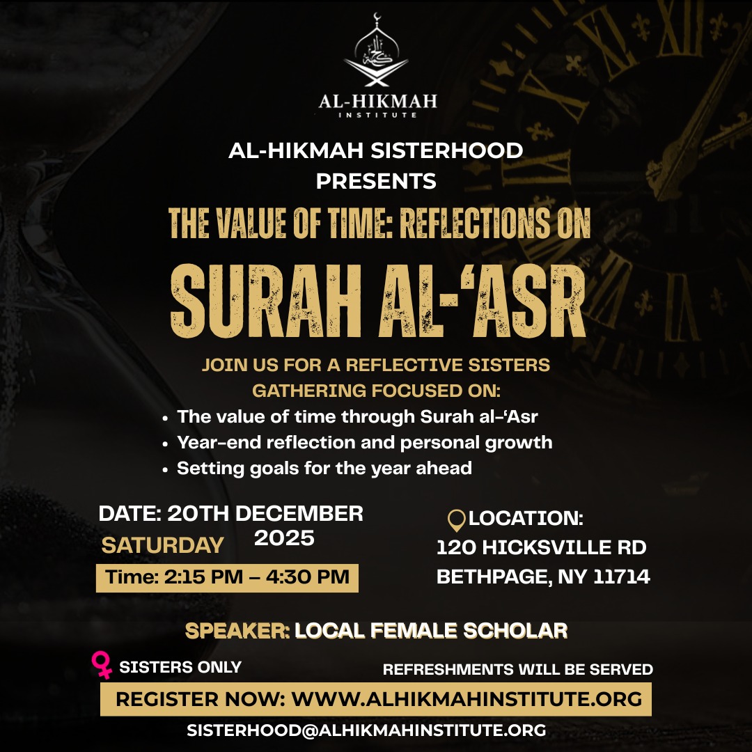 📖 Topic: The Value of Time: Reflection on Surah Al-Asr 🗓 This Saturday 12/20